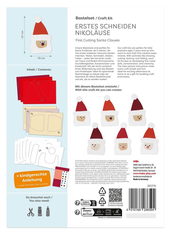 • Sachenmacher Erstes Schneiden Nikoläuse Bastelset Weihnachten von Haba