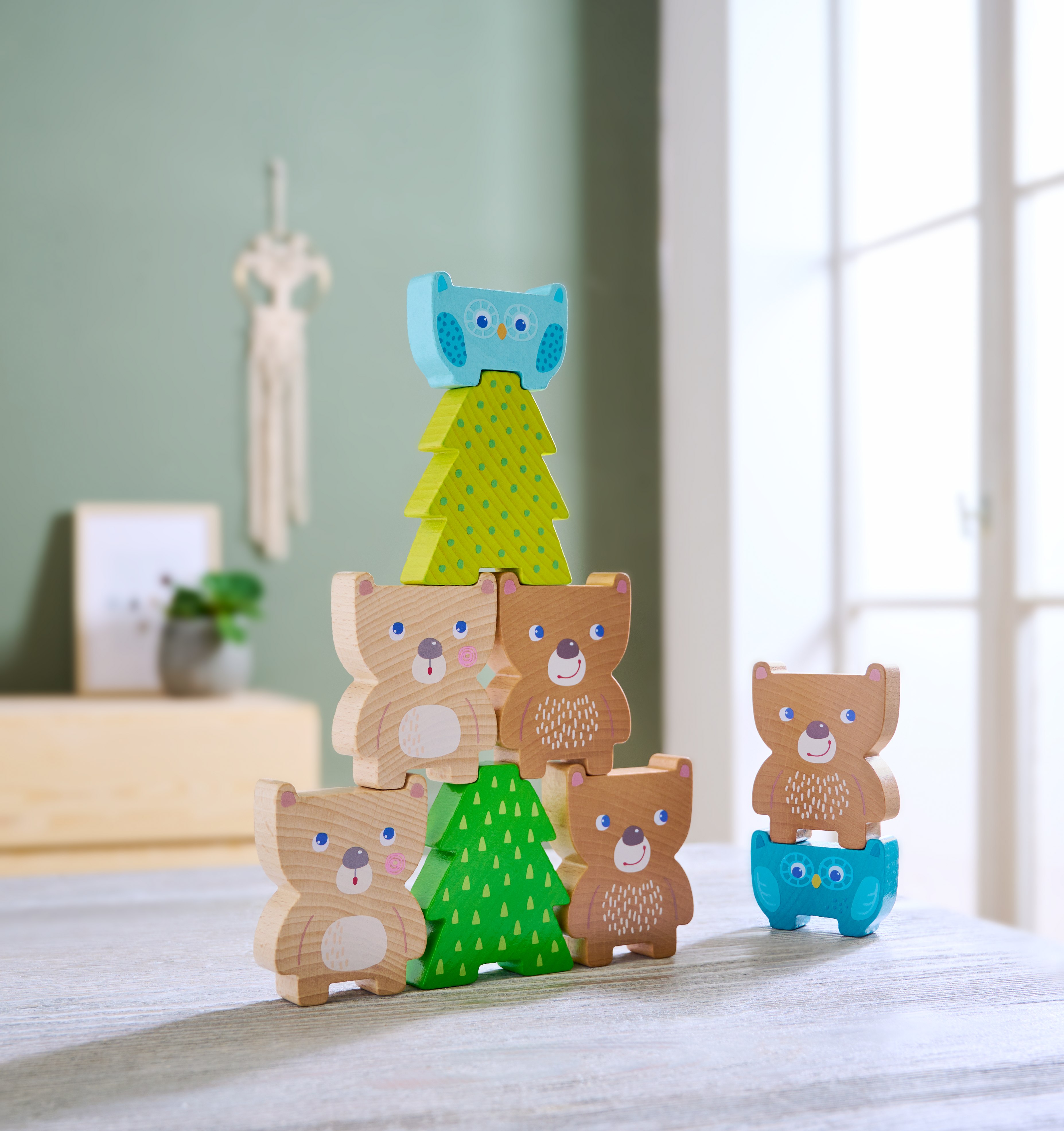 Haba gehört zu den großen deutschen Qualitätsmarken und produziert Spielwaren auf Spitzenniveau. Langjährige Erfahrungen sowie bestes Holz und andere hochwertige Materialien sorgen für Spielerfahrungen der extra Klasse. Genau das Richtige für Qualitätsbewusste Eltern mit einem pädagogischen Anspruch.• Haba Stapelspielzeug Waldfreunde