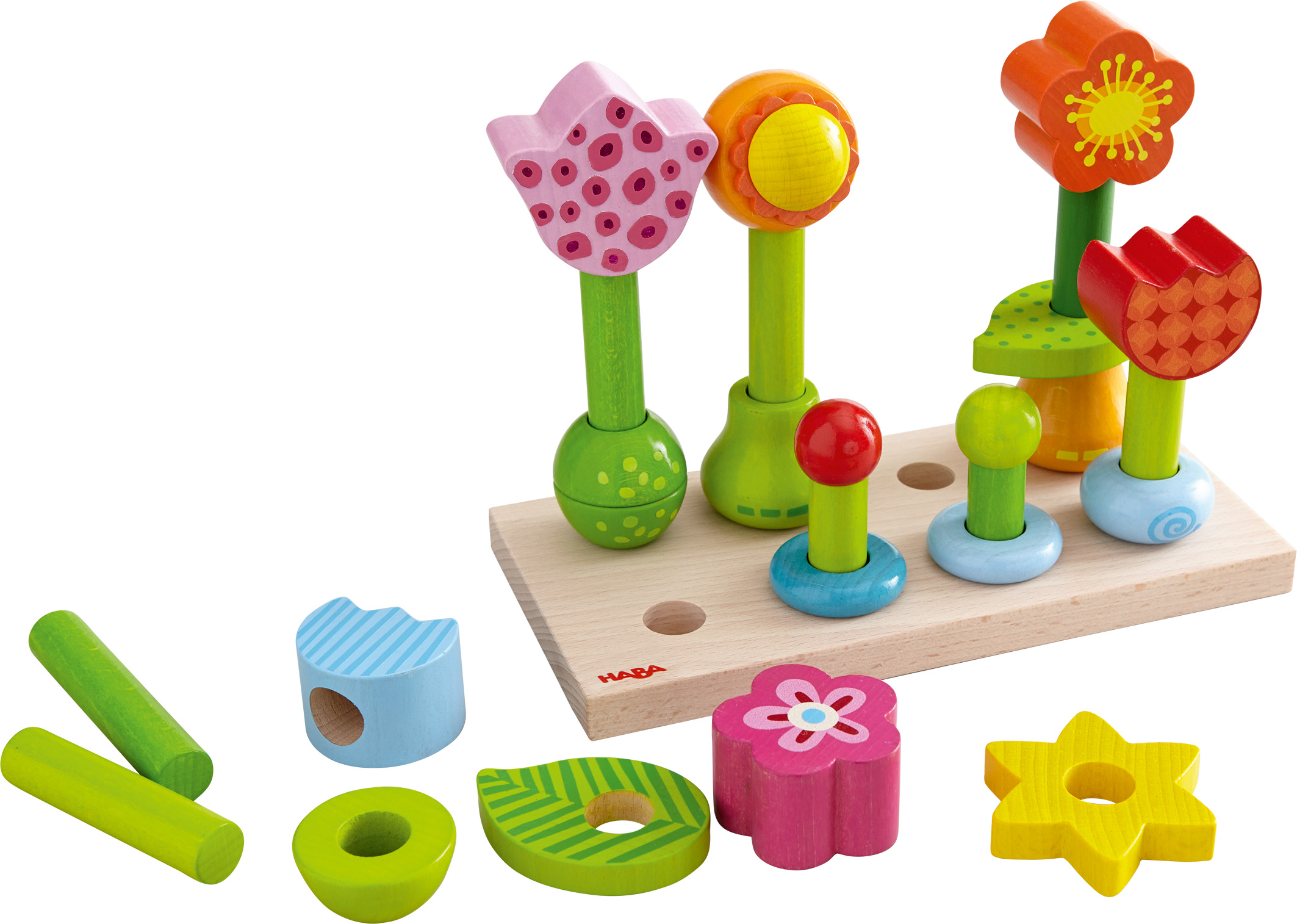 Der Blumengarten von HABA ist ein hübsches Steckspiel für Kleinkinder, das mit Spielfreude die Feinmotorik fördert.