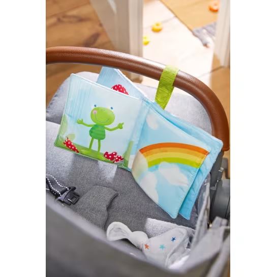 Das Stoffbuch Regenbogen von Haba begleitet unsere Kleinsten durch den Tag!