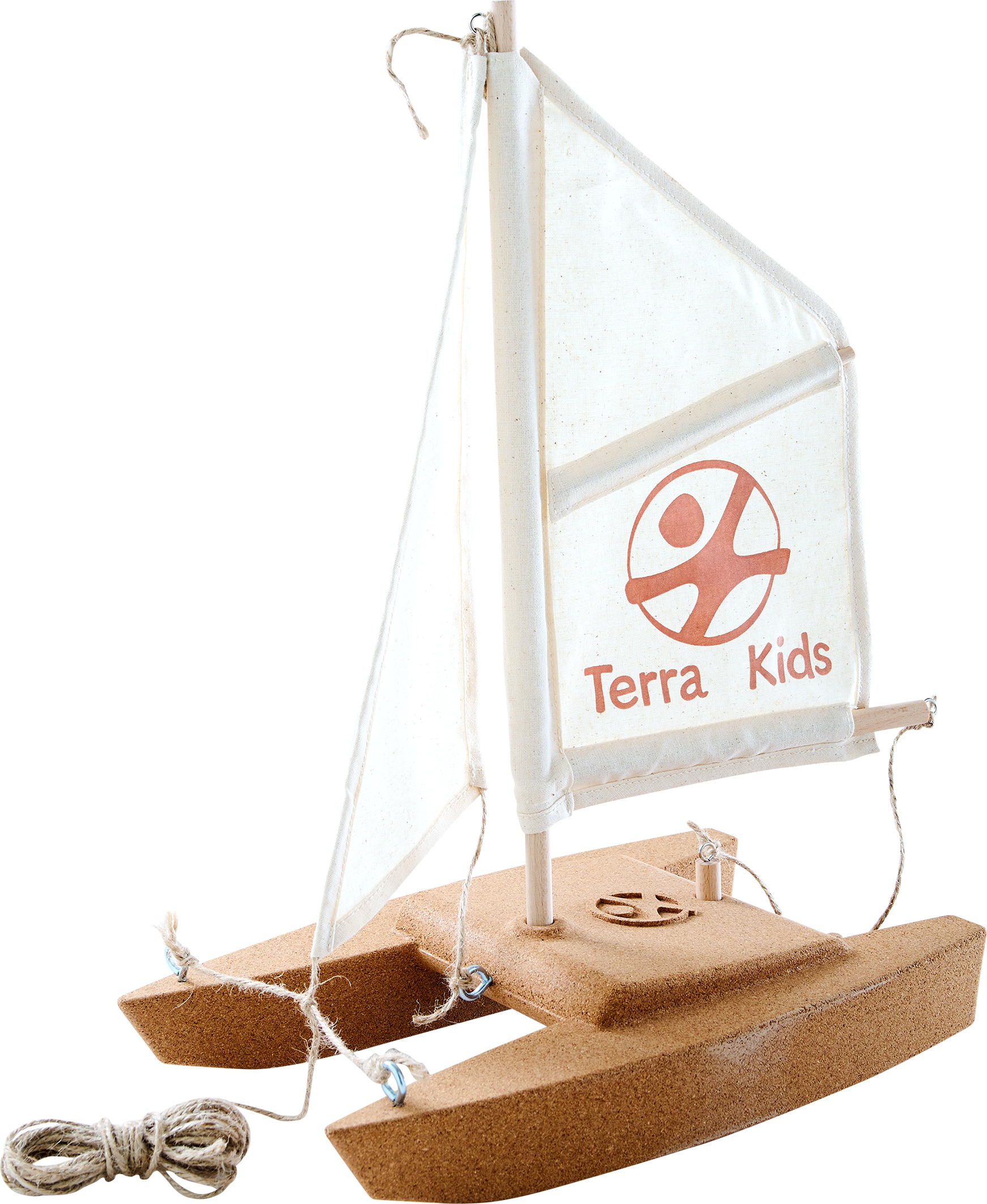 • Inhalt: Korkrumpf, Korksteuerruder, 3 Holzstäbe mit Ringösen, 2 Segel, 1 Sisalschnur (5 Meter lang), 3 Ösenschrauben, Anleitungsheft