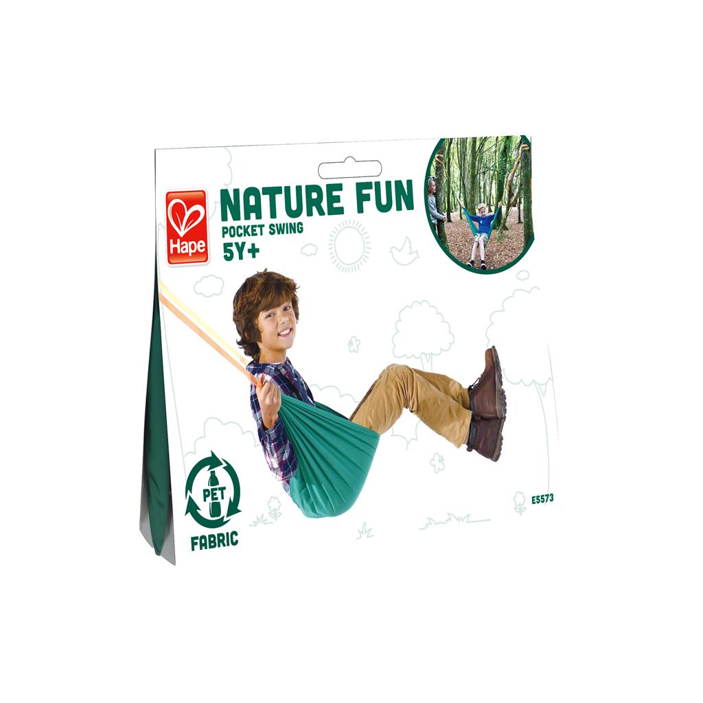 Die Hape Taschen-Schaukel macht den Waldspaziergang zu einem aufregenden Outdoor-Erlebnis. Die Taschen-Schaukel wird einfach zwischen zwei Bäumen befestigt und schon kann es losgehen. Mit einer Belastungsfähigkeit von 100 kg haben auch ältere Kinder riesen Spaß.
