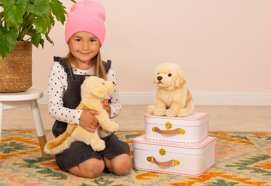 Der niedliche kleine Hundewelpe aus der Hermann Teddy Collection hat die typische Fellfärbung der Golden Retriever. Ein tolles Kuscheltier für kleine Hundefans.