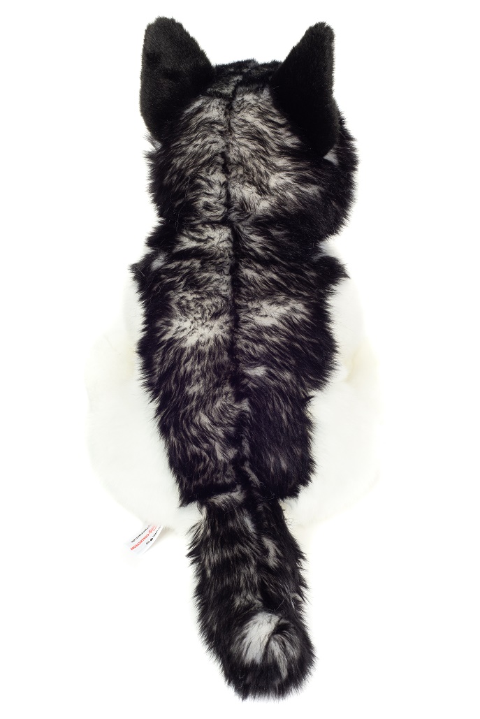 Dieser Plüschhund ist der sitzende Husky aus der Hermann Teddy Collection mit einer dunkleren Fellfärbung.