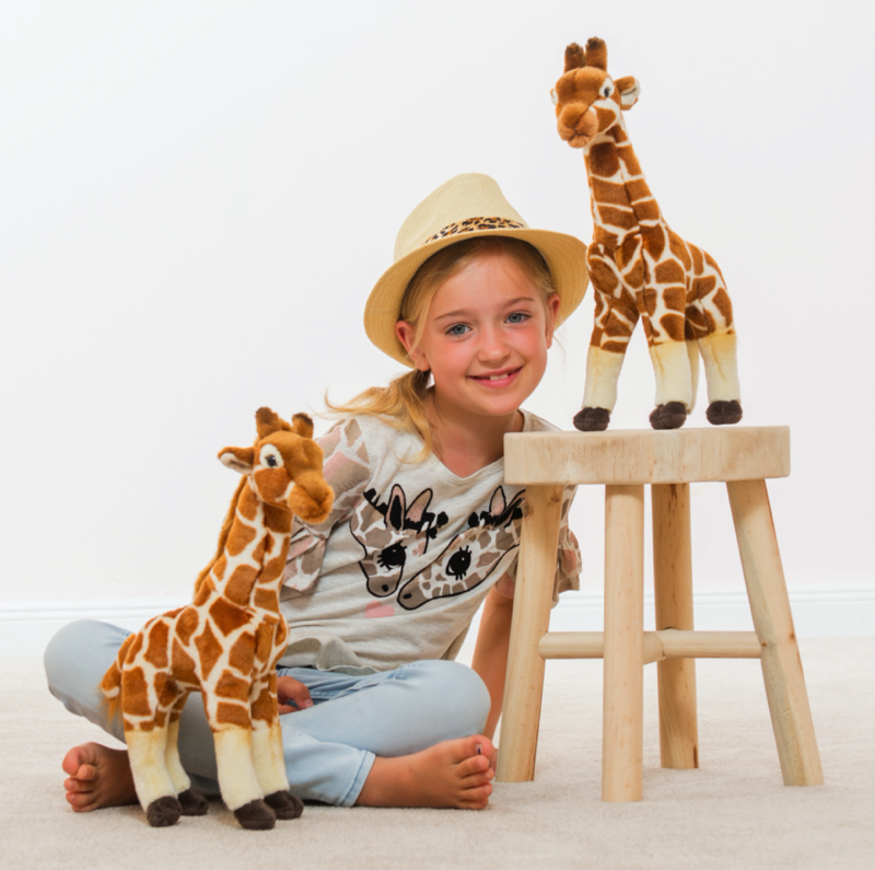 Die Giraffe aus der Hermann Teddy Collection ist so fest gestopft, dass sie auf ihren vier Beinen stehen kann.