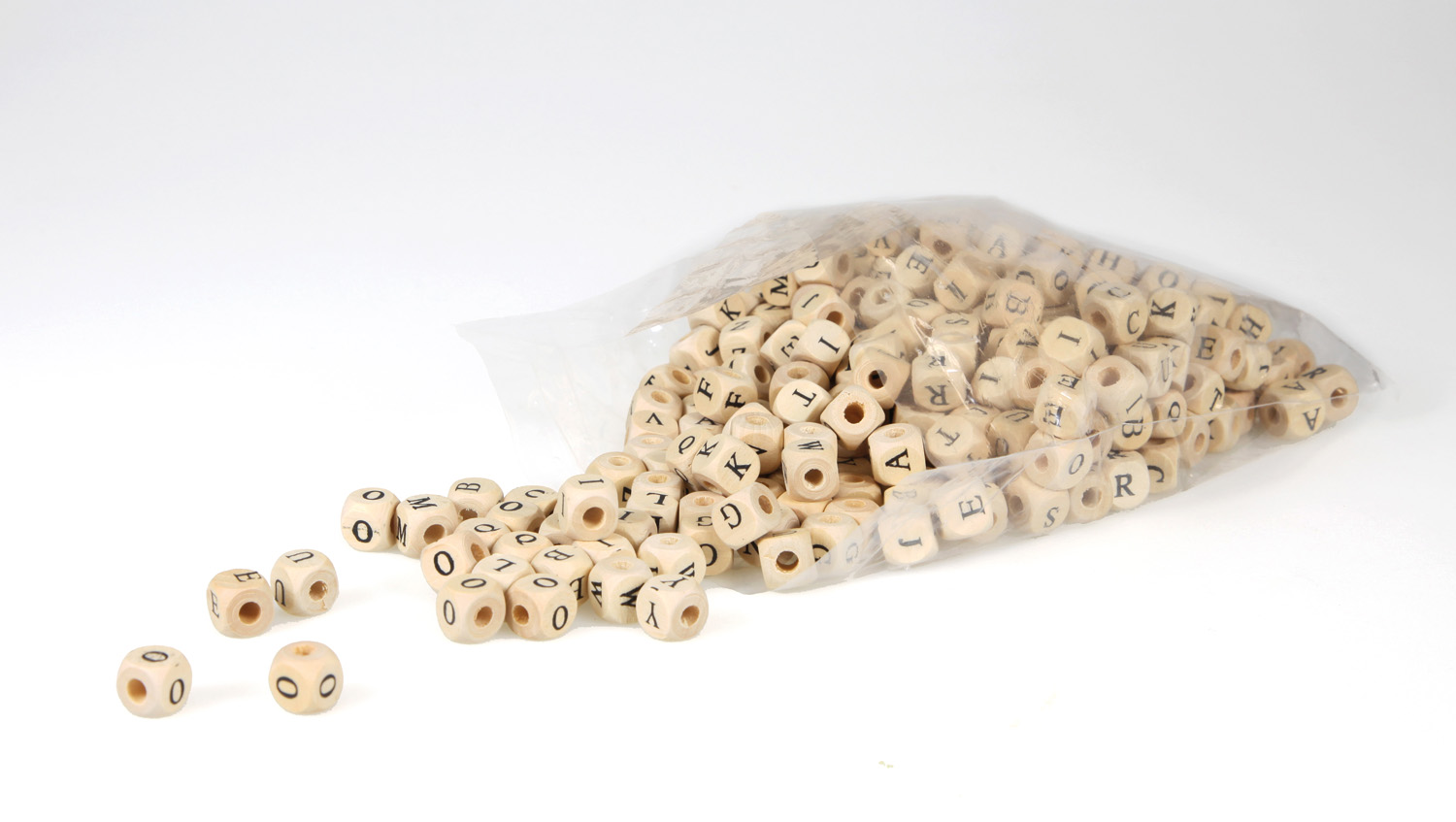 Mit diesen Holzbuchstabenwürfeln können z.B. Namensketten aufgefädelt werden!