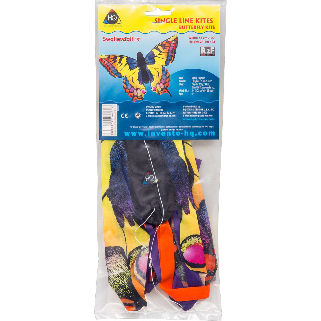 Einleinerdrachen in Form eines Schmetterlings. Dieser Schwalbenschwanz sieht wunderschön aus, wenn er am Himmel fliegt und ist leicht zu händeln.