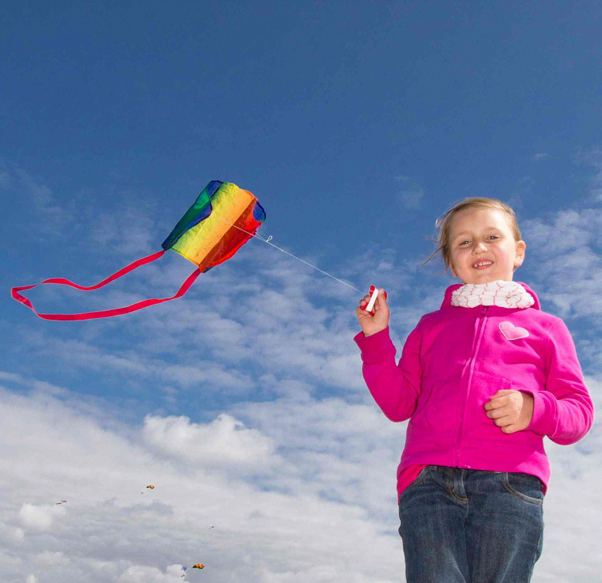 Kleiner einleiniger Kinder-Drachen mit buntem Regenbogen-Motiv. Er misst 43cm x 33cm und ist aber trotzdem incl. Schnur in einer nur 7cm großen Reißverschlußtasche verpackt. Ein idealer Reisedrache - alles dabei!