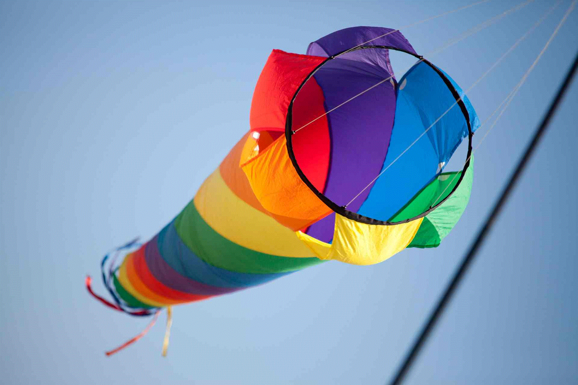 Ein Klassiker der Windsäcke ist die Turbine von Invento/HQ in Regenbogenfarben.