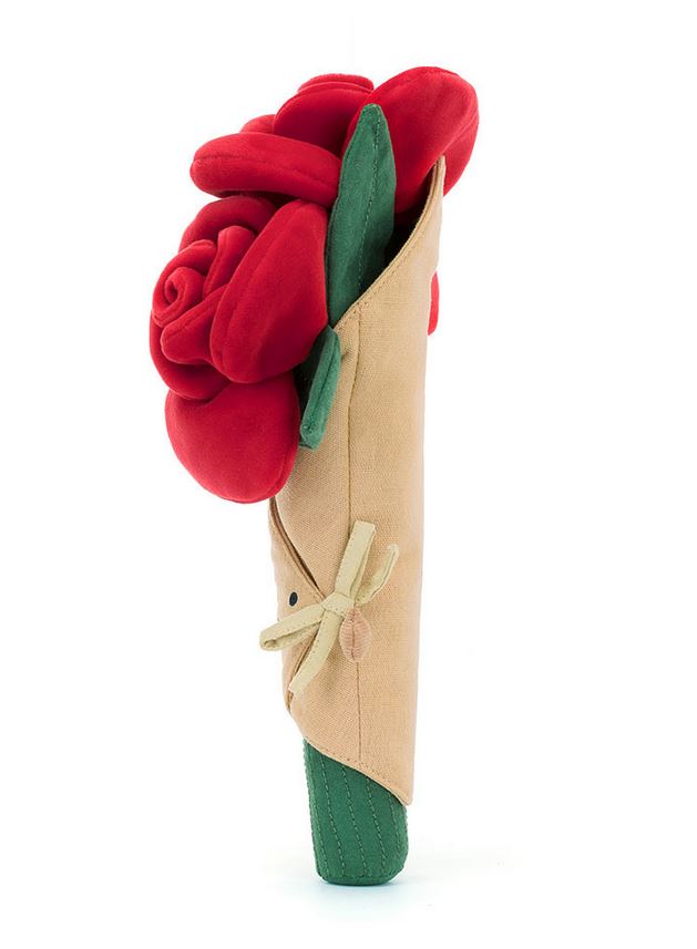 Amuseables Rose Bouquet von Jellycat umarmt die Welt! 3 rote Rosen, ein strahlendes Gesicht, weit geöffnete Arme! Das ist toll: Für dich, oder ihn, oder sie ...