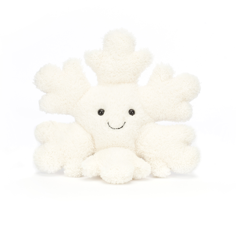 Funkelnd und glitzernd kommt Amuseable Snowflake Little von Jellycat zu euch ins Haus und ins Herz! Das stille Signal, das der Winter da ist und die ganze Welt verwandelt und verzaubert wird. Snowflake und ihre Millionen Freunde decken alles mit einer dicken, weißen Decke zu und erinnern uns daran, daß nun die Zeit zum Runterkommen da ist. Amuseable Snowflake Little von Jellycat ist zudem noch ein ganz spezieller Kuschelpartner für Kinderherzen und Kind-Gebliebene.