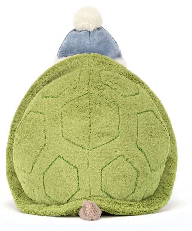Snowman Timmy Turtle von Jellycat überrascht. Eine Schildkröte im Winter? Ein Schneemann im Schildkröten-Panzer? Auf jeden Fall ist Timmy winterbereit - mit Schottenmuster-Schal und roter Wollmütze geht es jetzt zum Rodeln ... Hey! Da könnte er doch auf seinem eigenen Rückenpanzer den Berg herunterrodeln!?