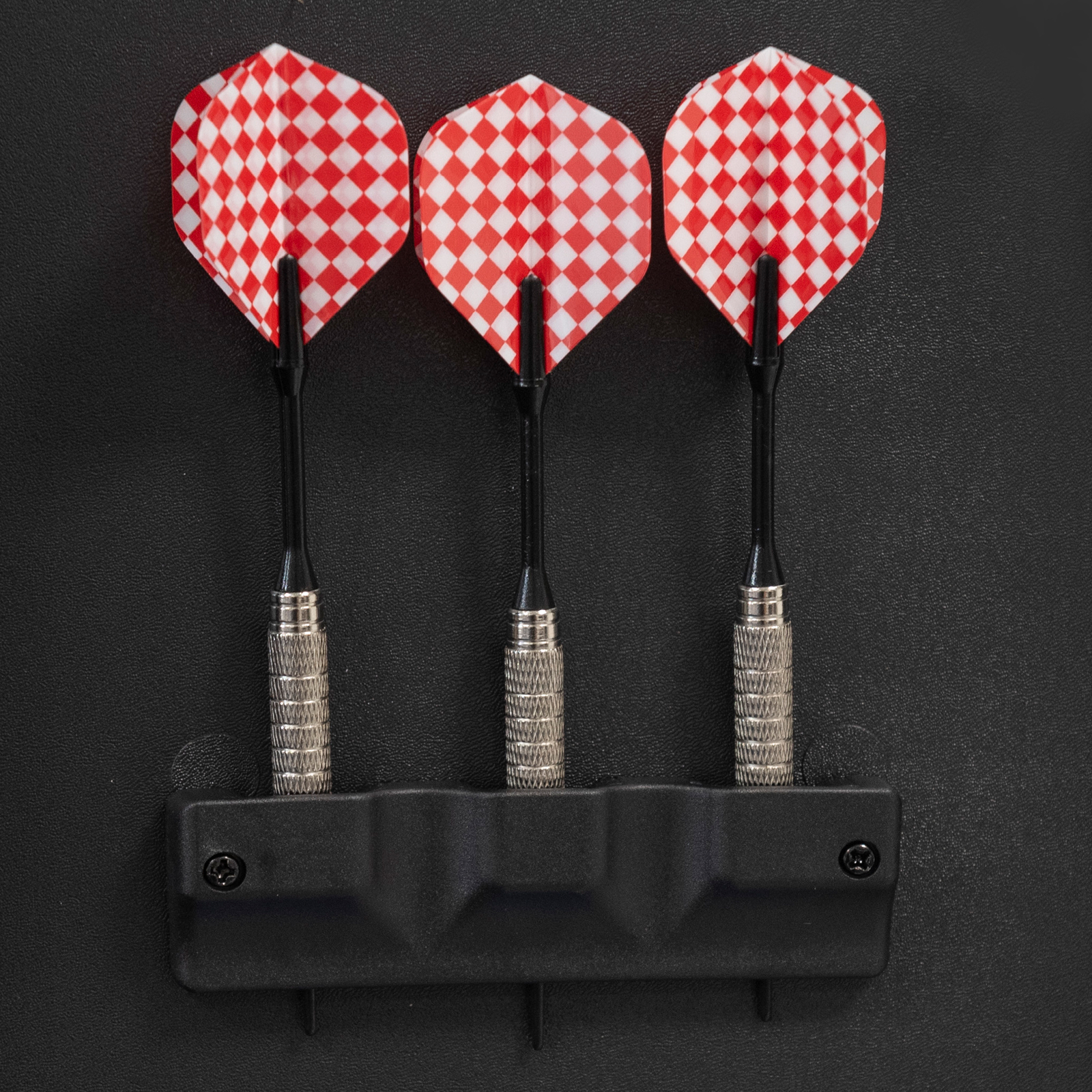 • Im Lieferumfang sind 12 Darts (ca. 15 g), Ersatzspitzen, Netzteil sowie Montagematerial enthalten.