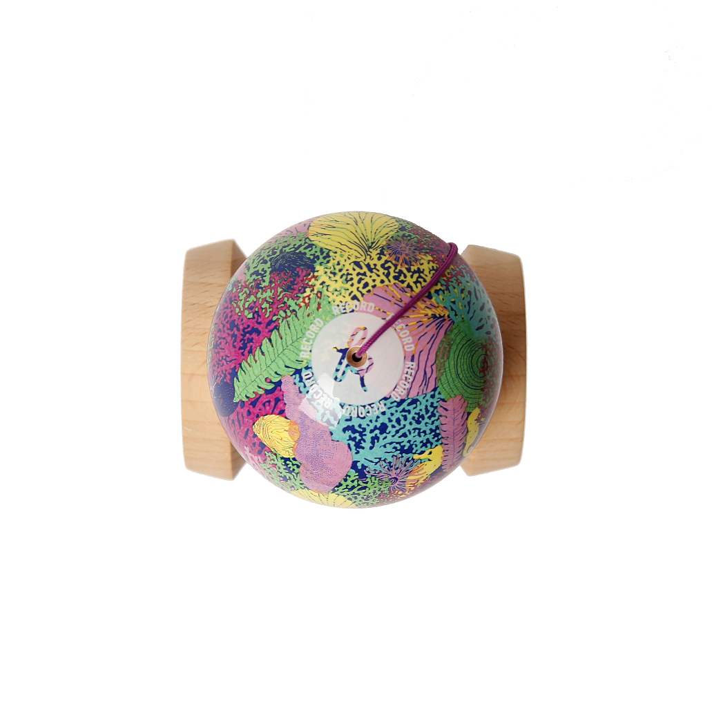 Liquid Love heißt das coole Motiv der Kugel, Match Clear ist der Name der glänzenden Oberfläche, die aber trotzdem gute Haftung hat.Diese Serie Record plus macht das Kendama spielen wieder ein wenig einfacher. Sowohl die Kugel als auch die Teller sind ein wenig größer als bei anderen Serien und machen das Fangen leichter. Auch die Bohrung in der Kugel ist etwas breiter. Es bietet jede Menge Spaß für Einsteiger UND Fortgeschrittene.