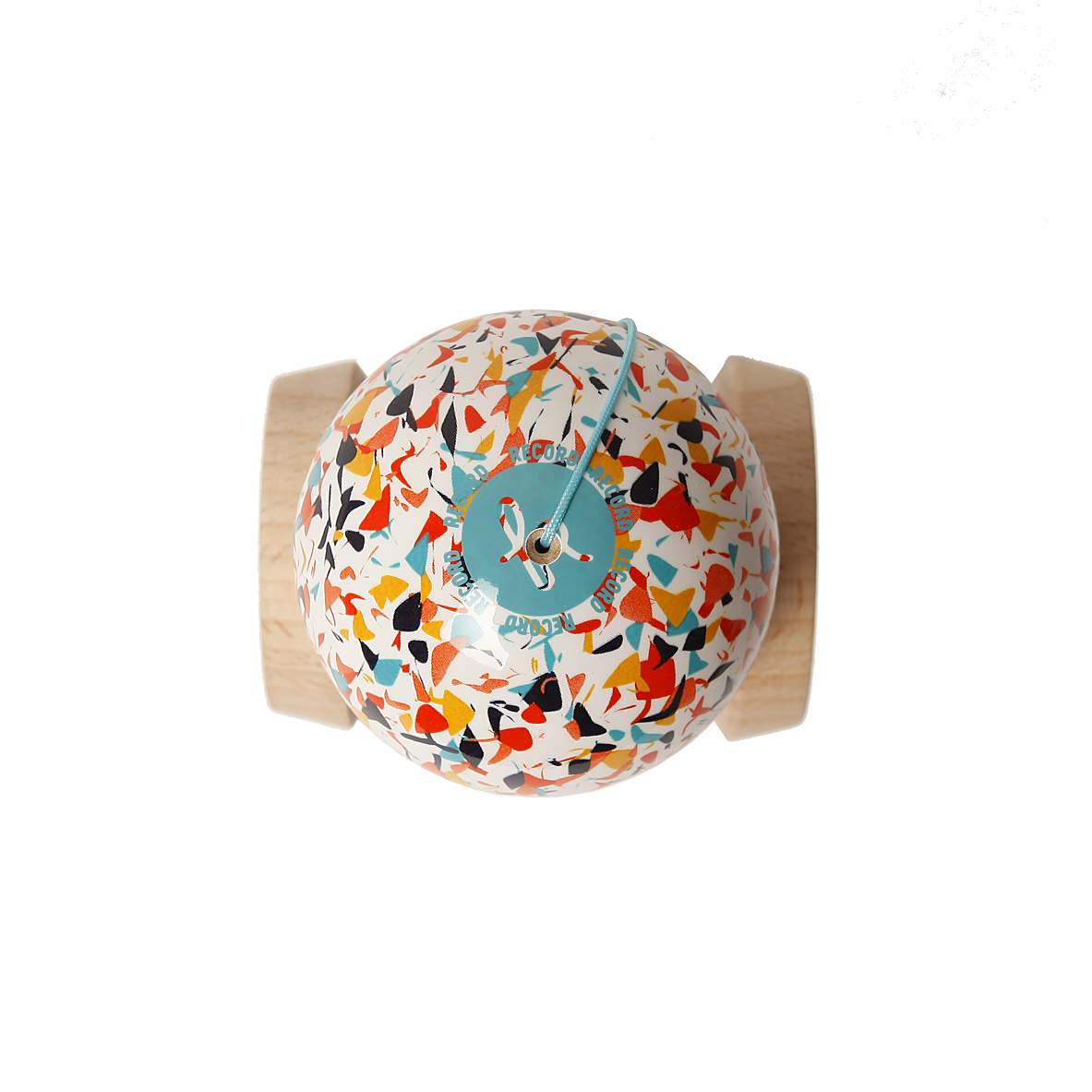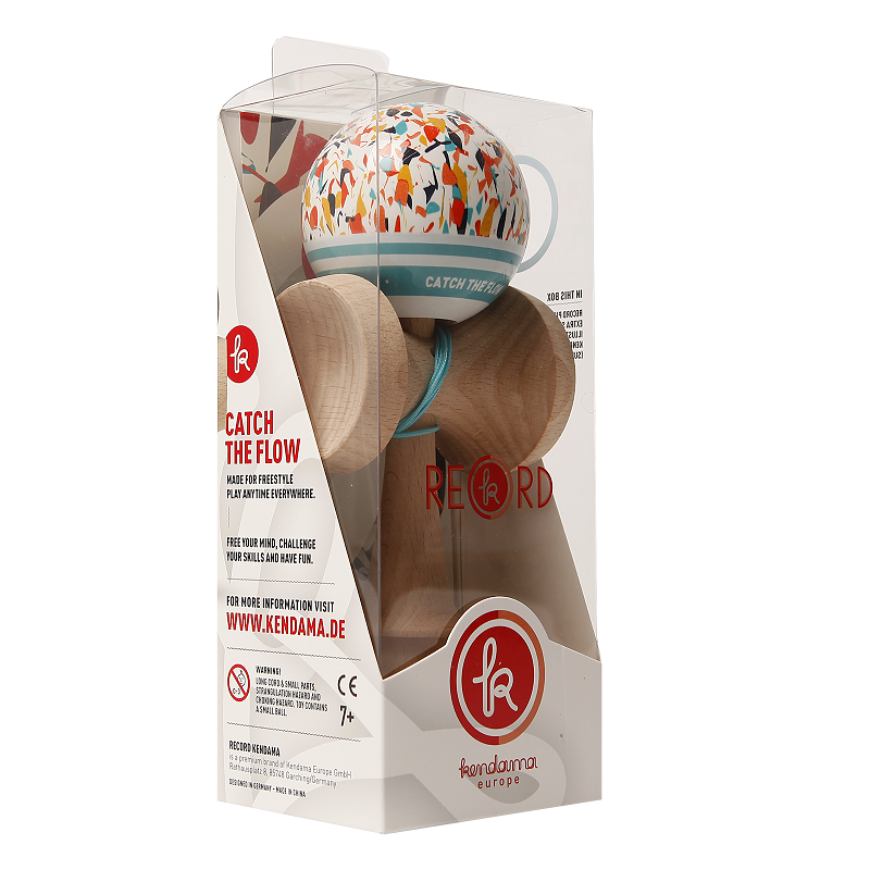 Splash heißt das coole Motiv der Kugel, Match Clear ist der Name der glänzenden Oberfläche, die aber trotzdem gute Haftung hat.Diese Serie Record plus macht das Kendama spielen wieder ein wenig einfacher. Sowohl die Kugel als auch die Teller sind ein wenig größer als bei anderen Serien und machen das Fangen leichter. Auch die Bohrung in der Kugel ist etwas breiter. Es bietet jede Menge Spaß für Einsteiger UND Fortgeschrittene.