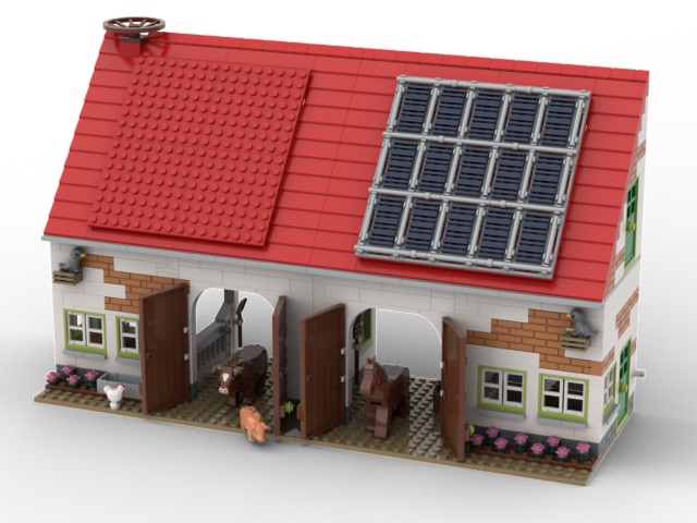 Der KiddiCraft Bauernhof Stall ist super! Viele Teile, ein Storchennest auf dem Dach, Solarzellen und dann auch noch zum Aufklappen. Hier haben alle Tiere Platz: Das Schwein grunzt, die Kuh schaut nach Futter und das Pferd scharrt schon mit den Hufen ("Ich will ausreiten!"). Oben in den Speicherräumen lagern Futtersäcke und Heu, unten bei den Tieren sind die anderen nützlichen Utensilien vorhanden. Durch die großen Tore können die Tiere herausflitzen, aber die Katze kommt sowieso überall durch. Vorzüglich kombinierbar mit den anderen Bauernhof- bzw. Ponyhof-Produkten von KiddiCraft.