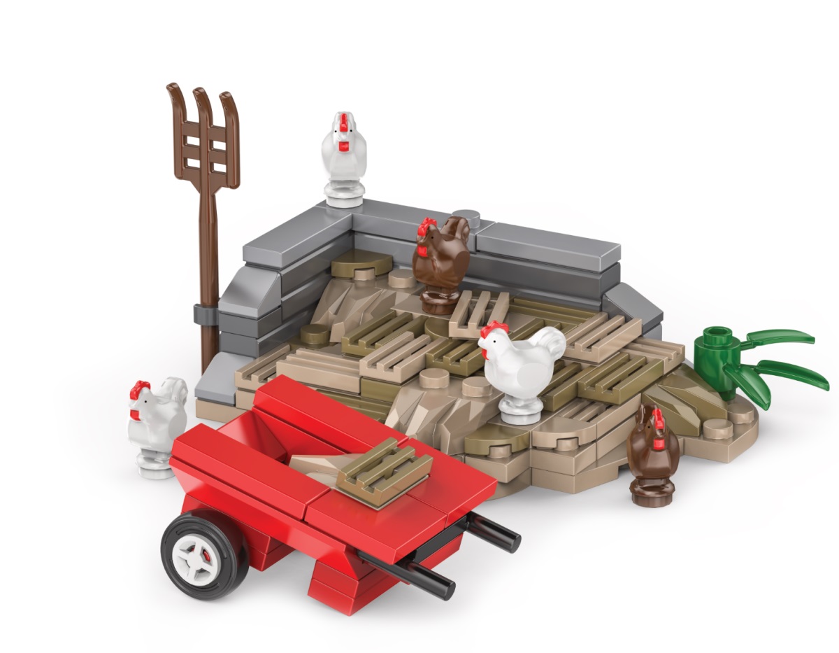 • Das Set enthält: 83 Teile, darunter 5 Hühner