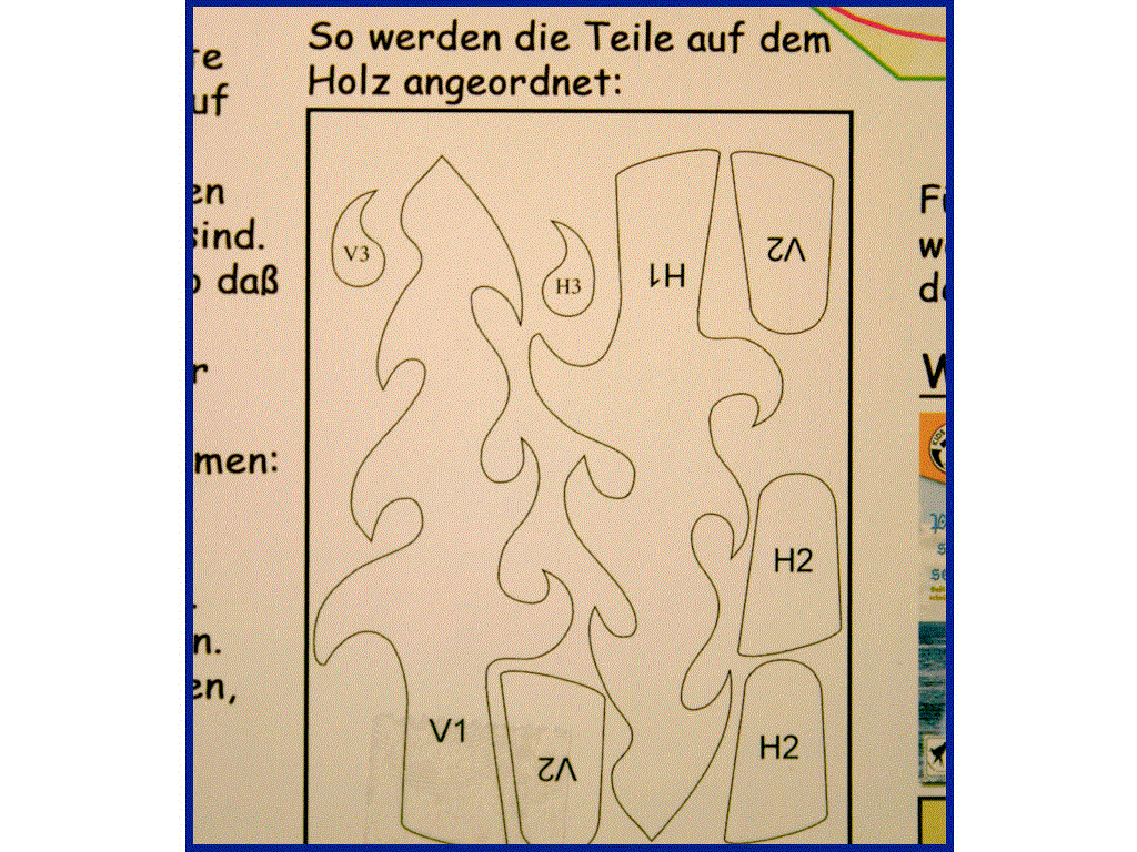 • Inhalt: Sperrholzrohling (4mm stark, wasserfest verleimt), Anleitung, Schablone