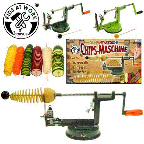 Mit der fantastischen Chips-Maschine können nicht nur Kartoffeln sondern auch viele andere Gemüsesorten lecker zubereitet werden. Ein optimales Gerät für Familienfeiern, Kindergeburtstage und andere Feste!