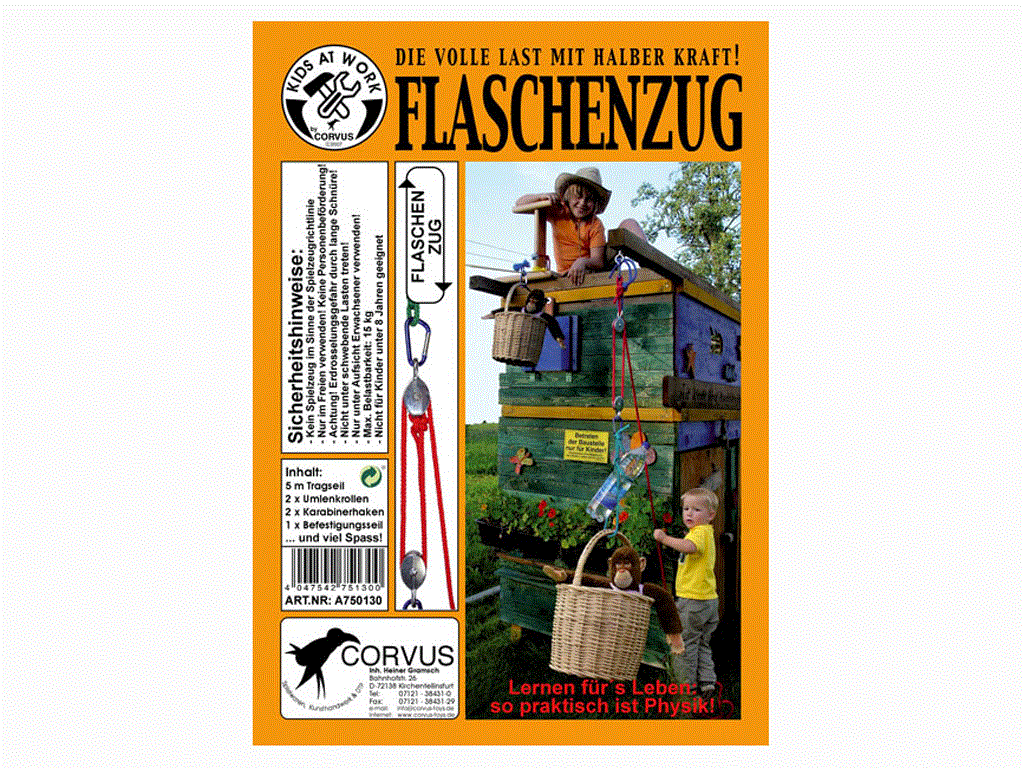 Es ist ideales Zubehör für Baumhausbesitzer, aber natürlich auch für alle anderen Großen und Kleinen, die Lasten bis 15kg von Oben nach Unten oder von Unten nach Oben transportieren wollen!