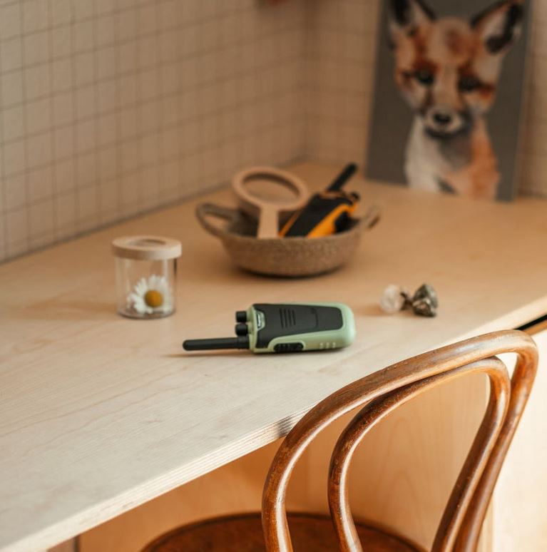 Das Kidywolf WalkieTalkies 2er Set grün/orange ist für Kinder und Erwachsene gleichermaßen: Kinder können spannende Draußen-Abenteuer erleben, miteinander reden, wichtige Informationen austauschen, obwohl sie sich nicht sehen, um Häuserecken herum, im Wald, aber auch im Haus von Zimmer zu Zimmer. Die Reichweite beträgt bis zu 6 km! Die Walkie-Talkies sind robust und haben praktischerweise auch noch eine Taschenlampe integriert. Auch mit dabei: Wiederaufladbare Lithium -Akkus.