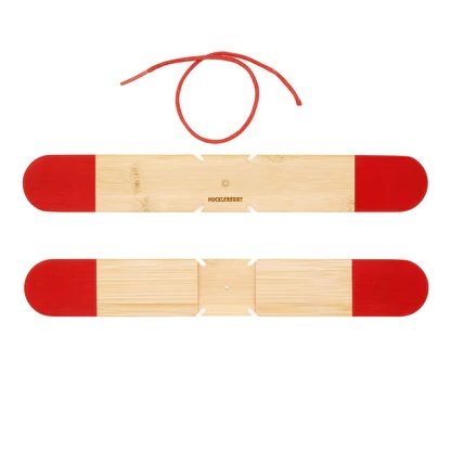 Zum Mitnehmen: Der Taschen-Bumerang von Huckleberry aus Bambusholz lässt sich schnell in zwei Teile zerlegen, dann hat er ein praktischeres Format für die Tasche!