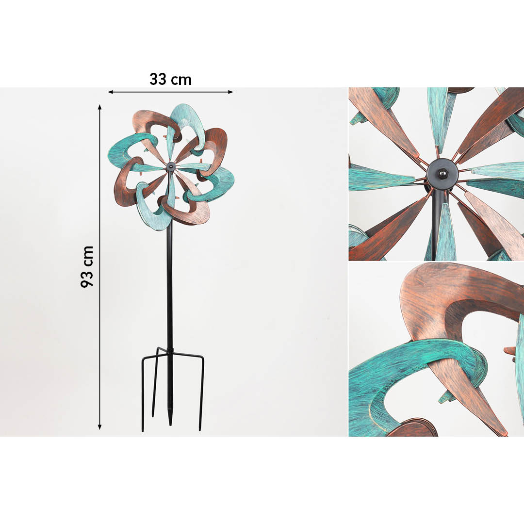 Mit ihrer soliden Metallkonstruktion, wartungsfrei-abgedichteten Lagern und doppelten Rotoren sind diese Windspiele so gebaut, dass sie garantiert allen Wetterbedingungen standhalten. Solide Erdspieße an der Basis sorgen für eine feste Verankerung an windigen Tagen.
