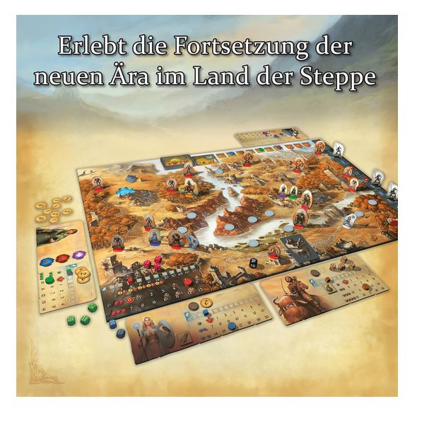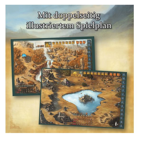 • Inhalt:1 Spielplan,4 Heldentafeln, 1 Ausrüstungstafel, 90 Legendenkarten, 33 kleine Karten, 51 illustrierte Spielfiguren in Kunststoffhaltern, 1 Erzähler-Figur, 15 Würfel, 14 Anzeigesteine aus Holz, 1 Katapult, 113 Kartonplättchen, 1 Losspiel-Anleitung, 1 Begleitheft