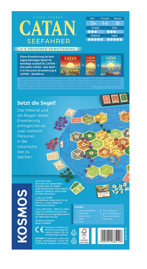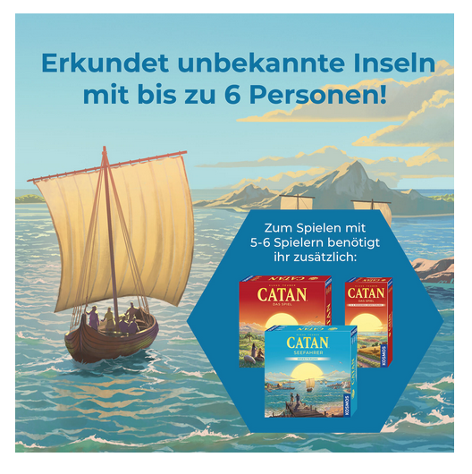 CATAN Seefahrer Erweiterung für 5-6 Personen von Kosmos bringt neue Spielelemente und noch mehr Spielspass in die CATAN Welt: Mit diesem Set könnt ihr mit 5 oder gar 6 Spielenden spielen! Und es wird spannend: Die CATAN Bewohnenden verlassen mit Schiffen die Insel, kämpfen gegen Piraten, tauschen Stoffe und erleben Wunder ...