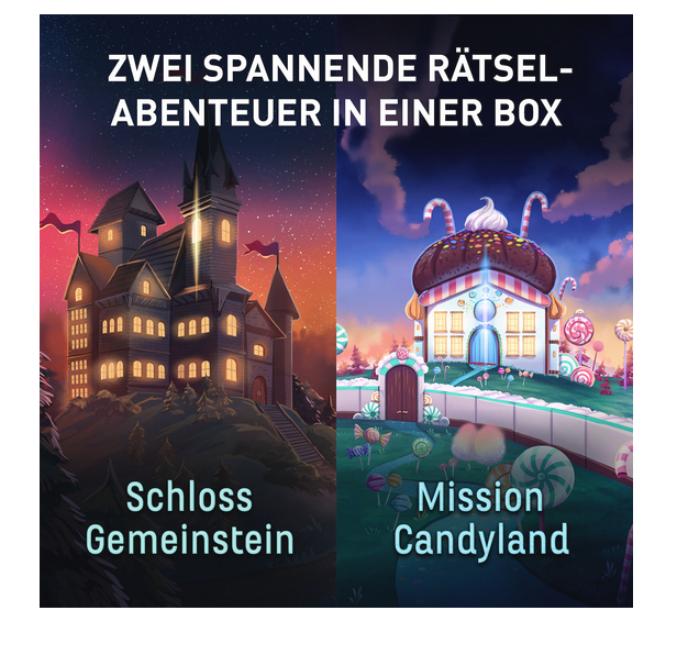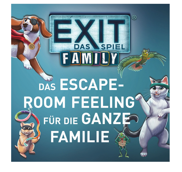 Die Rätsel-Spiel-Box EXIT®-Das Spiel-Family bietet gleich 2 spannende Familien-Escape-Rätsel: Schloss Gemeinstein und Mission Candyland: Ein cooler Tier-Superhelden-Club wird gegründet und muß 2 Rätsel lösen. Seltsame Dinge gehen auf Schloss Gemeinstein vor sich und die Süßigkeitenfabrik Candyland gibt auch Fragen auf. EXIT® – Das Spiel Family ist der leichter Einstieg in die Escape Game-Welt für die ganze Familie.