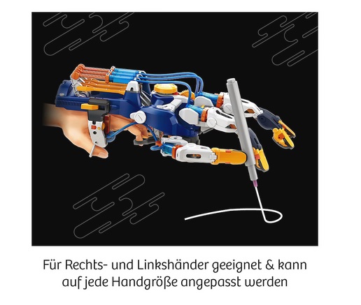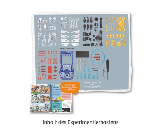 Der Experimentierkasten Cyborg-Hand von KOSMOS ist eine spannende Mischung aus technischem Lernen und langanhaltendem Spiel-Spaß für Kinder zwischen 10 und 14 Jahren. Mit diesem Bausatz entsteht eine präzise steuerbare Roboter-Hand, die dreimal so groß ist, wie die eigene Hand. Große Dinge greifen oder kleine Teile aufsammeln oder schreiben? Kein Problem!