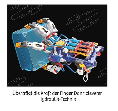 • Inhalt: Bauteile zum Zusammenbau der Hand, Hydraulik-Zylinder, Hydraulik-Schläuche, Schraubendreher, Anleitung