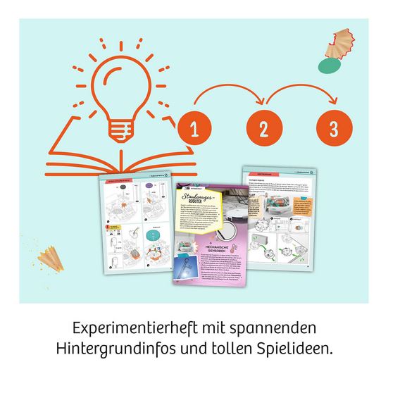 • Inhalt: Bausatz zum Zusammenbau des Roboters, Motor, Staubbox mit Filter, farbig illustrierte Anleitung