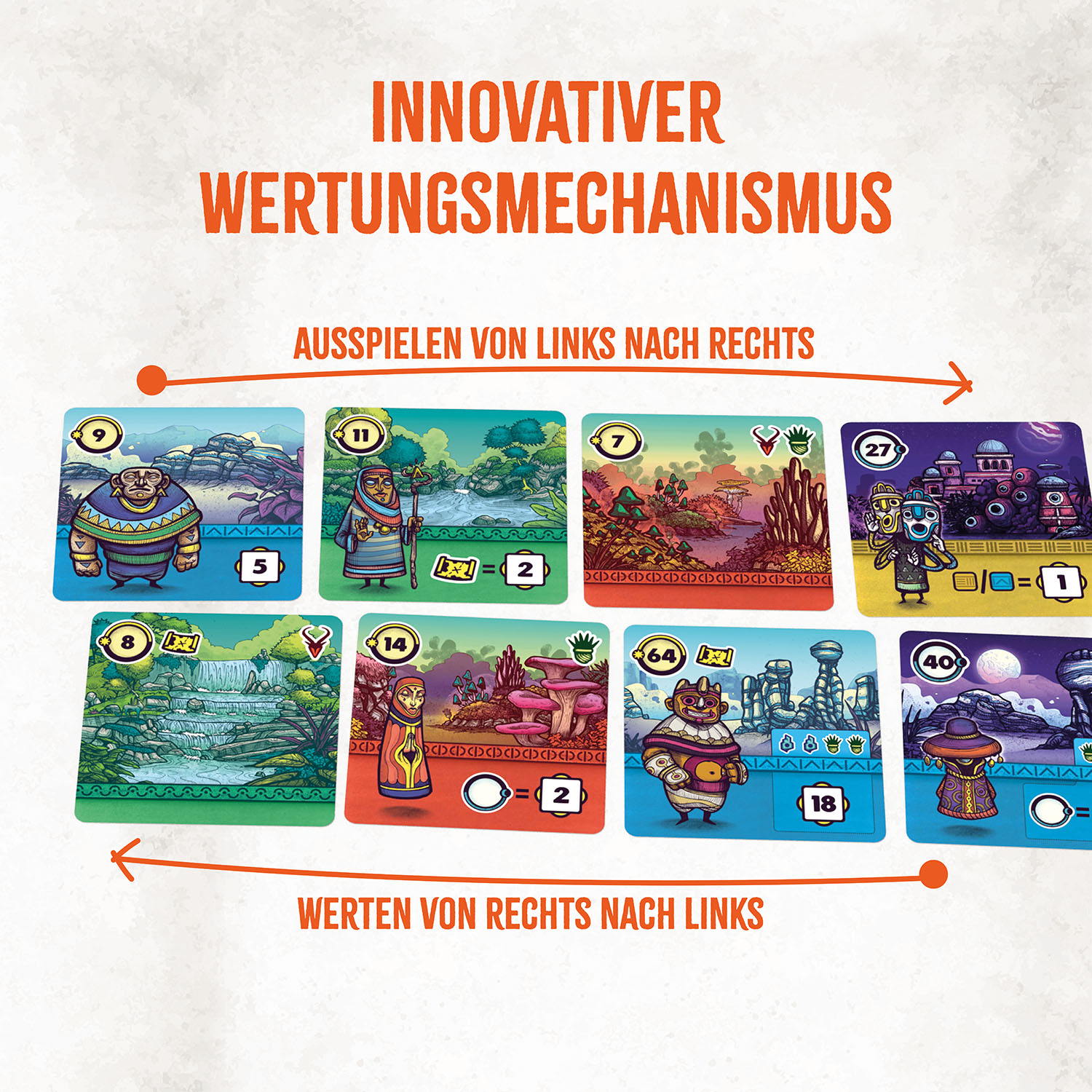 Das neuartige Kartenspiel Faraway von Kosmos spielt in der phantastischen Welt von Alua. Diese Welt ändert sich ständig, Aufbau und Punkte-Zählung sind sehr unkonventionell. Zum gleich-nochmal-Spielen geeignet.