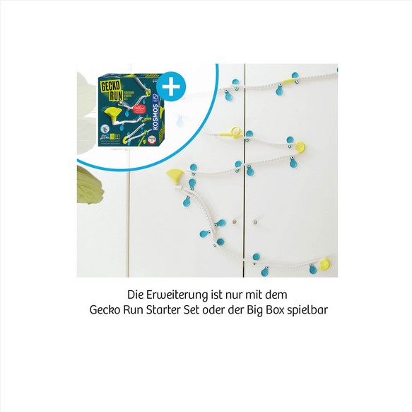 Die Kosmos Kugelbahn Gecko Run - Speed Kick-Erweiterung gibt deinen Kugeln den nötigen Wumms, um z.B. auch Steigungen zu meistern. Du kannst diese Erweiterung auch als Streckensperre nutzen und innovative Wege suchen, diese durch einen geschickten Aufbau trotzdem zu überwinden. Achtung: du benötigst das KOSMOS Gecko Run „Starter Set“ oder die Big Box.