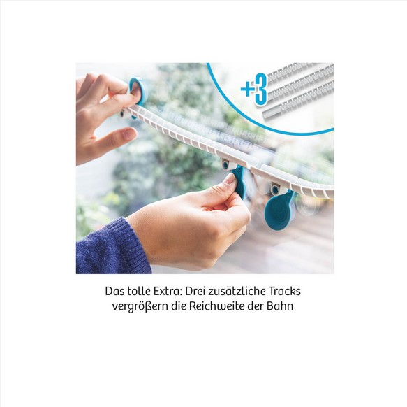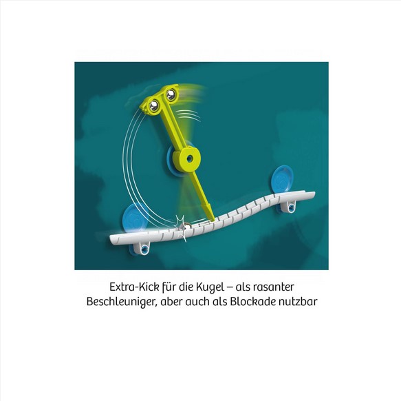 • Inhalt: 1 Speed Kick, 1 Kreisadapter, 3 Tracks, 6 Adapter, 1 Track Bridge, 1 Track Turn, 2 Stahlkugeln, 8 Nano-Haftpads, farbig illustrierte Anleitung