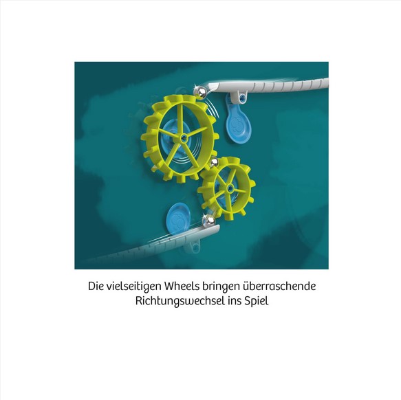 Die Kosmos Kugelbahn Gecko Run - Wheels-Erweiterung lässt deine Kugeln durch geschickten Einsatz und je nach Geschwindigkeit die Zahnräder überwinden. Du kannst die Zahnräder sogar zu einer Art Getribe zusammenfügen. Einfach ausprobieren oder von die mitgelieferten Inspirationen umsetzen. Tüfteln mit Kugeln sozusagen. Achtung: du benötigst das KOSMOS Gecko Run „Starter Set“ oder die Big Box.