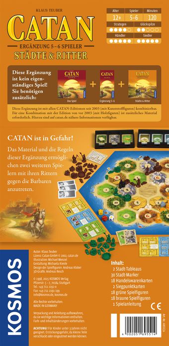 • Achtung: Nur mit dem Catan Basisspiel, Ergänzung 5-6 und dem Städte & Ritter Basis-Set zusammen spielbar