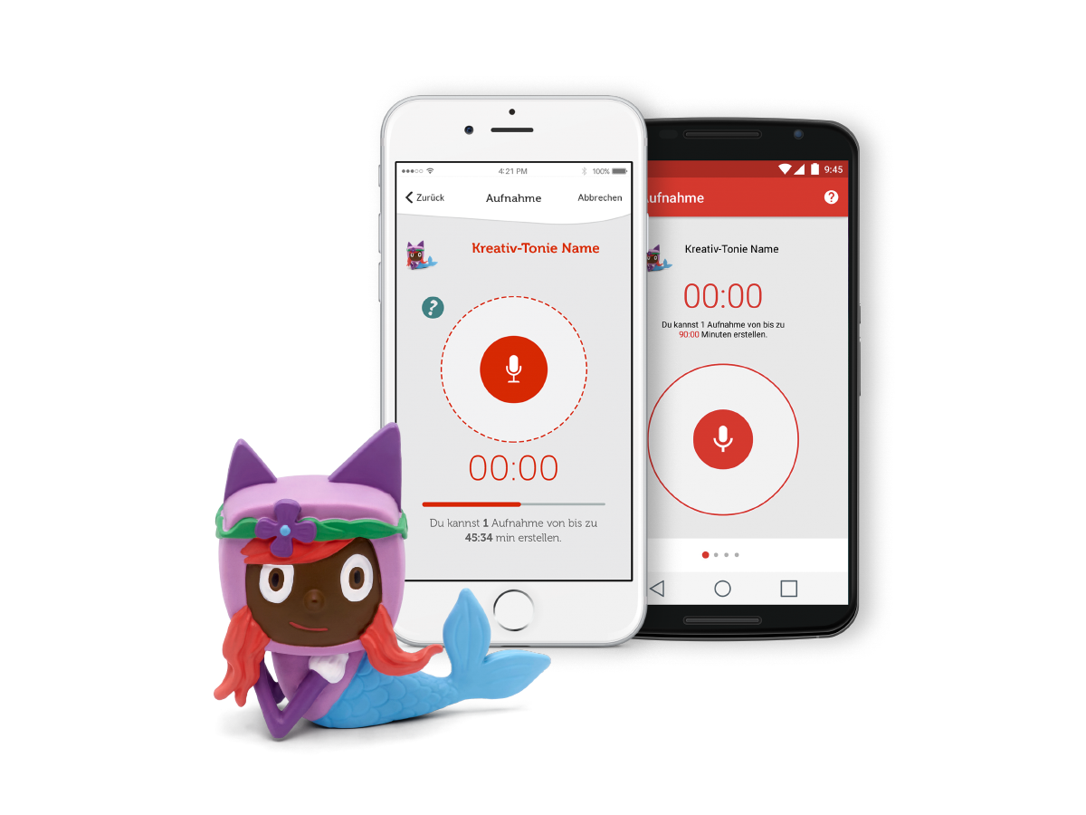 Mit der dazugehörigen, kostenlosen Smartphone-App können eigene Sprachaufnahmen aufgezeichnet und dem Kreativ-Tonie zugewiesen werden.
