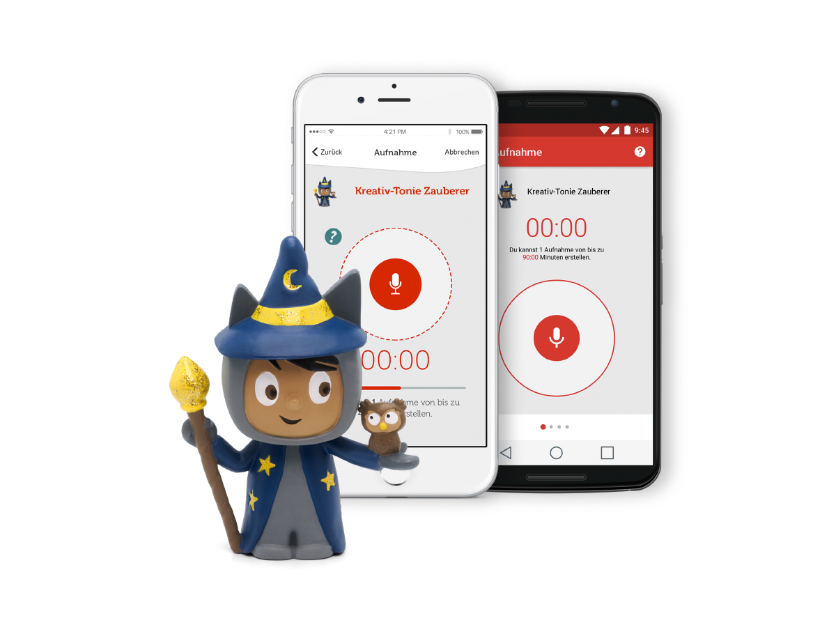 Mit der dazugehörigen, kostenlosen Smartphone-App können eigene Sprachaufnahmen aufgezeichnet und dem Kreativ-Tonie zugewiesen werden.