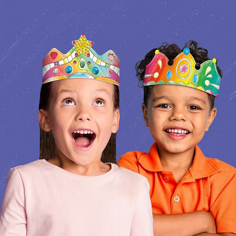 Kreativer Kronenspaß für kleine Könige und Königinnen! Mit diesen Bastel- & Ausmal-Kronen können Kinder ihrer Fantasie freien Lauf lassen, sie bemalen und künstlerisch verzieren und am Schluss einfach zusammenstecken.
