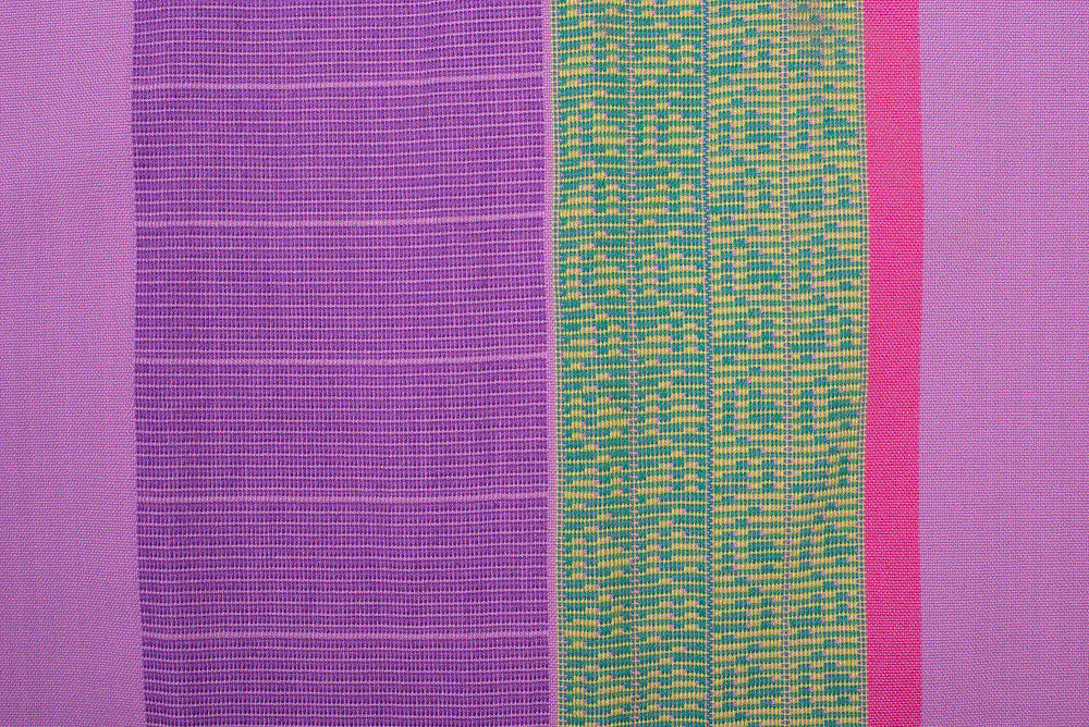 Die kunstvollen Pflanzenmuster und die traditionellen Zöpfchen, Cadejos, an der Aufhängung geben einen Einblick in die traditionelle Webkunst Kolumbiens.