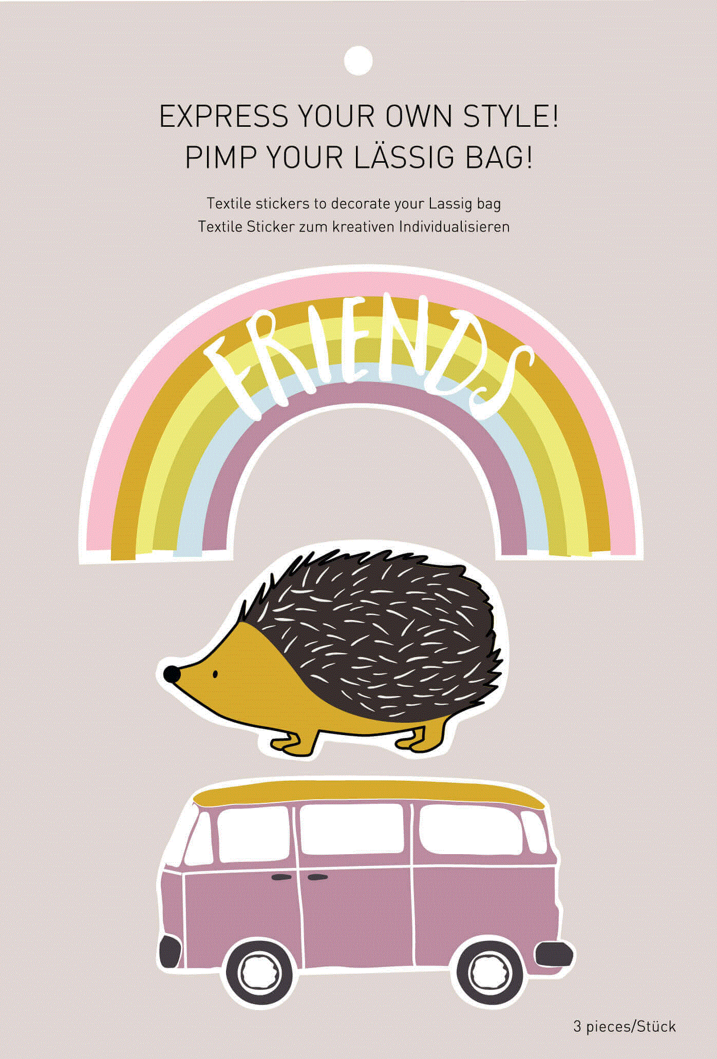 • Farben Rosa und Braun mit gelben Highlights (Griff, Träger). Dazu 3 textile Sticker zum Gestalten!