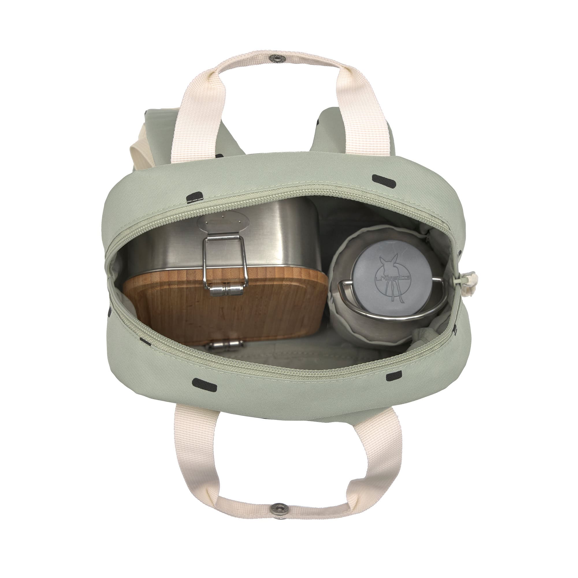 Der Lässig Mini Square Backpack Happy Prints light olive ist angesagter Kindergartenrucksack mit schickem Tupfen-Design und der modernen rechteckigen Form mit Griffen. Mit einem Gewicht von nur 0,268 kg, verstellbaren Schultergurten, einem zusätzlichen Brustgurt sowie dem Namensschild kann nichts mehr schiefgehen.