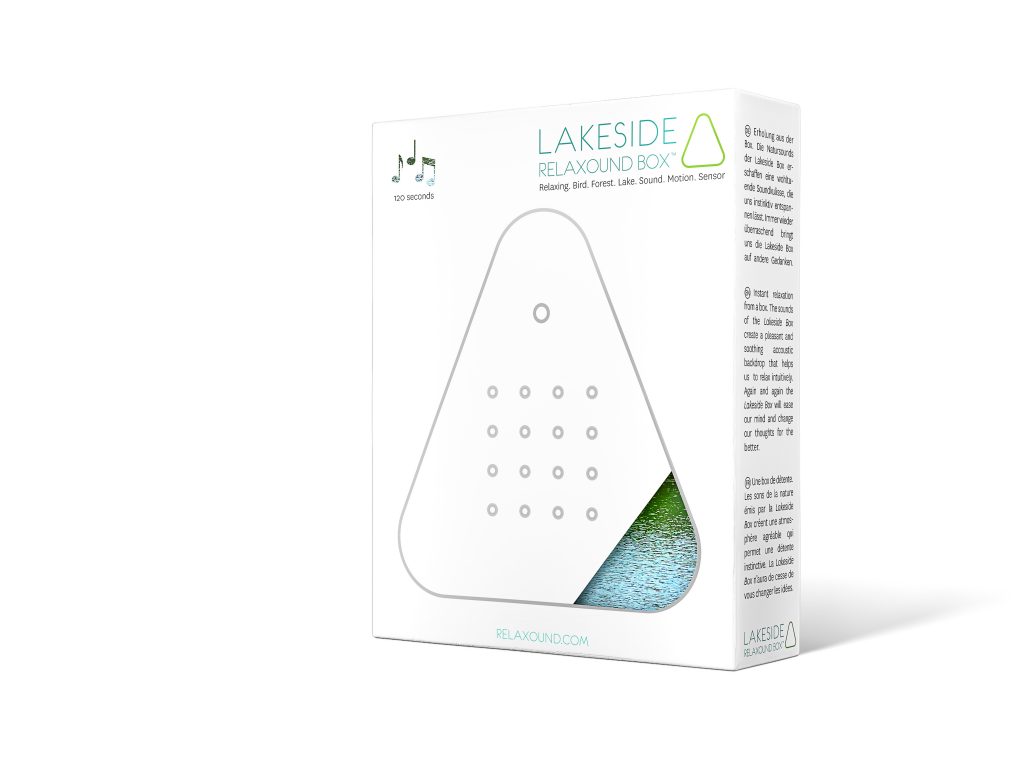 Ausgelöst durch einen Bewegungssensor tönen aus der Box Klänge aus der Natur in sehr guter Tonqualität. Wasserplätschern eines Sees, Grillen zirpen, Vögel zwitschern. Die Lautstärke ist natürlich regelbar. Nach ca. 2 Minuten verstummt der Waldsee wieder. Der angenehme Sound soll daran erinnern, sich Pausen zu nehmen, durchzuatmen und zu entspannen.