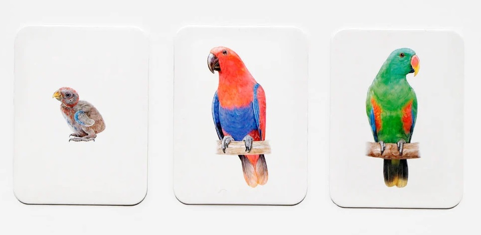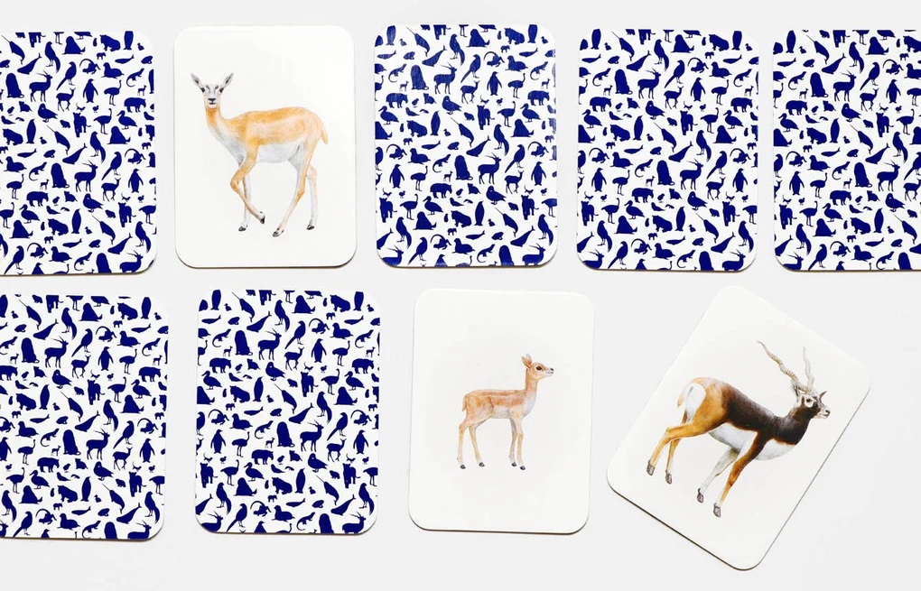 Das Tier-Familien-Memo ist wieder ein unheimlich schön gestaltetes Spiel aus dem Laurence King Verlag. Hier müssen keine Pärchen sondern Trios gefunden werden, Männchen, Weibchen und Jungtier.