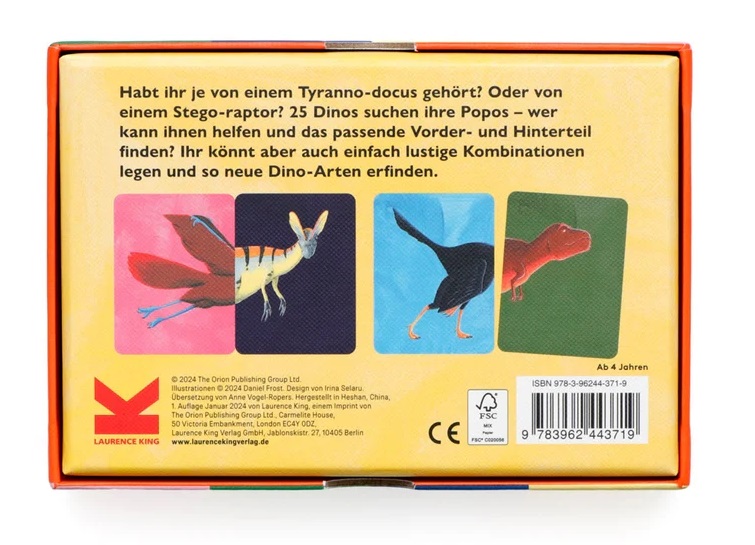 Wo ist mein Po Dino von Laurence King Verlag ist die große Such nach Vorne und Hinten - Dino-mäßig. Ein T-Rex-Kopf mit Velociraptor-Popo? Quatsch! Jetzt bist du dran: Suche die passenden Dino-Vorder- und Hintertteile.