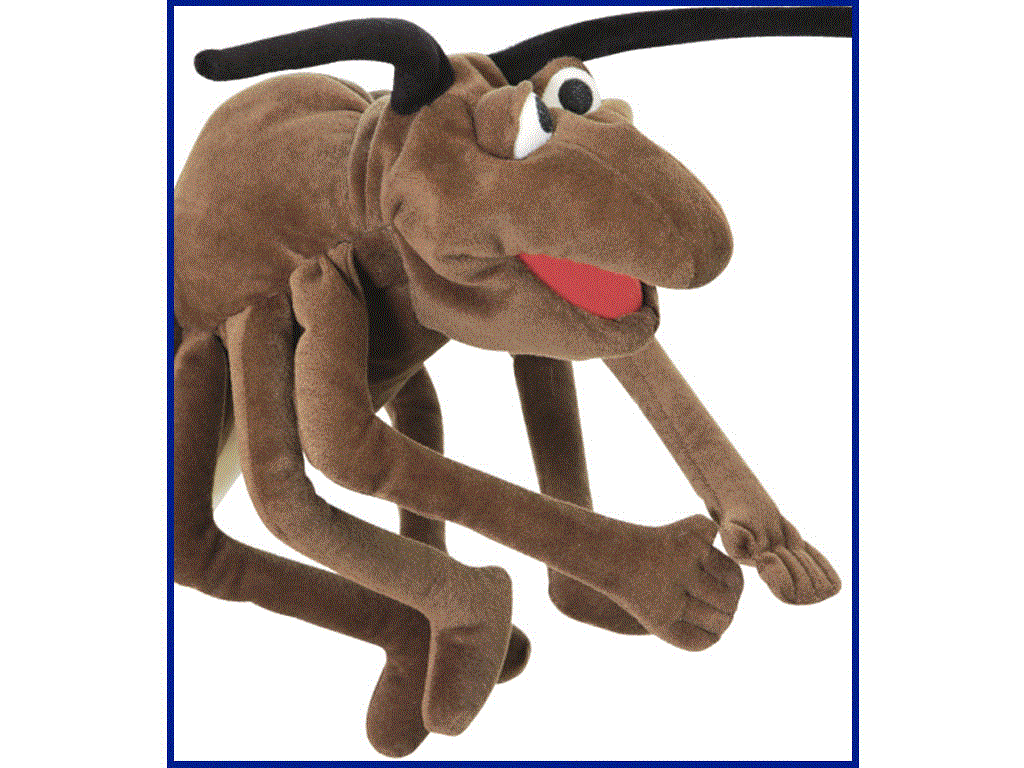 Die Handspieltiere von Living Puppets sind etwas ganz Besonderes. Sie sind liebevoll, farbenfroh und bis ins kleinste Detail gestaltet. Das Material ist angenehm weich und lädt zum Kuscheln ein. Der Mund der Handpuppen ist durch einen leicht zu erreichenden Handzugang bespielbar und ermöglicht eine vielseitige Mimik und eine Vielzahl an Spielmöglichkeiten. Anton, die Ameise, ist sehr fleißig und lebt mit seinen Freunden auf einem Ameisenhaufen. Der Handeingang befindet sich am Bauch.