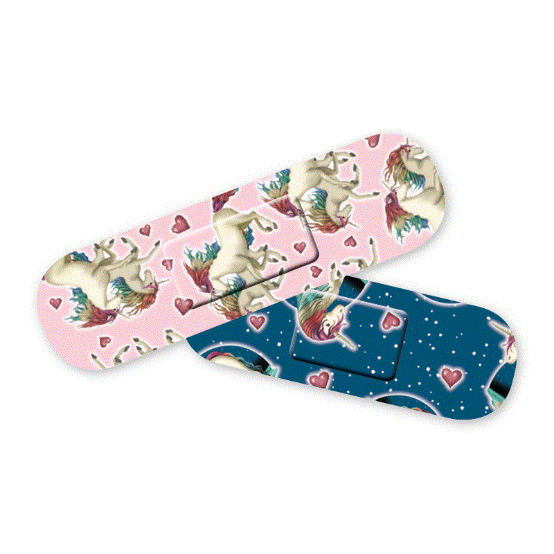 Diese tollen Einhornpflaster darf auch ein Erwachsener tragen! Die Lunabelle-Einhörner sind auf dunkelblauem oder rosafarbenen Hintergrund illustriert, es sind 10 Pflaster in 2 Größen im Briefchen enthalten. Mit so einem Pflaster tut der Ratscher fast nicht mehr weh! Bunte Pflaster sind sehr beliebt und immer ein nettes Mitbringsel oder Beigeschenk.
