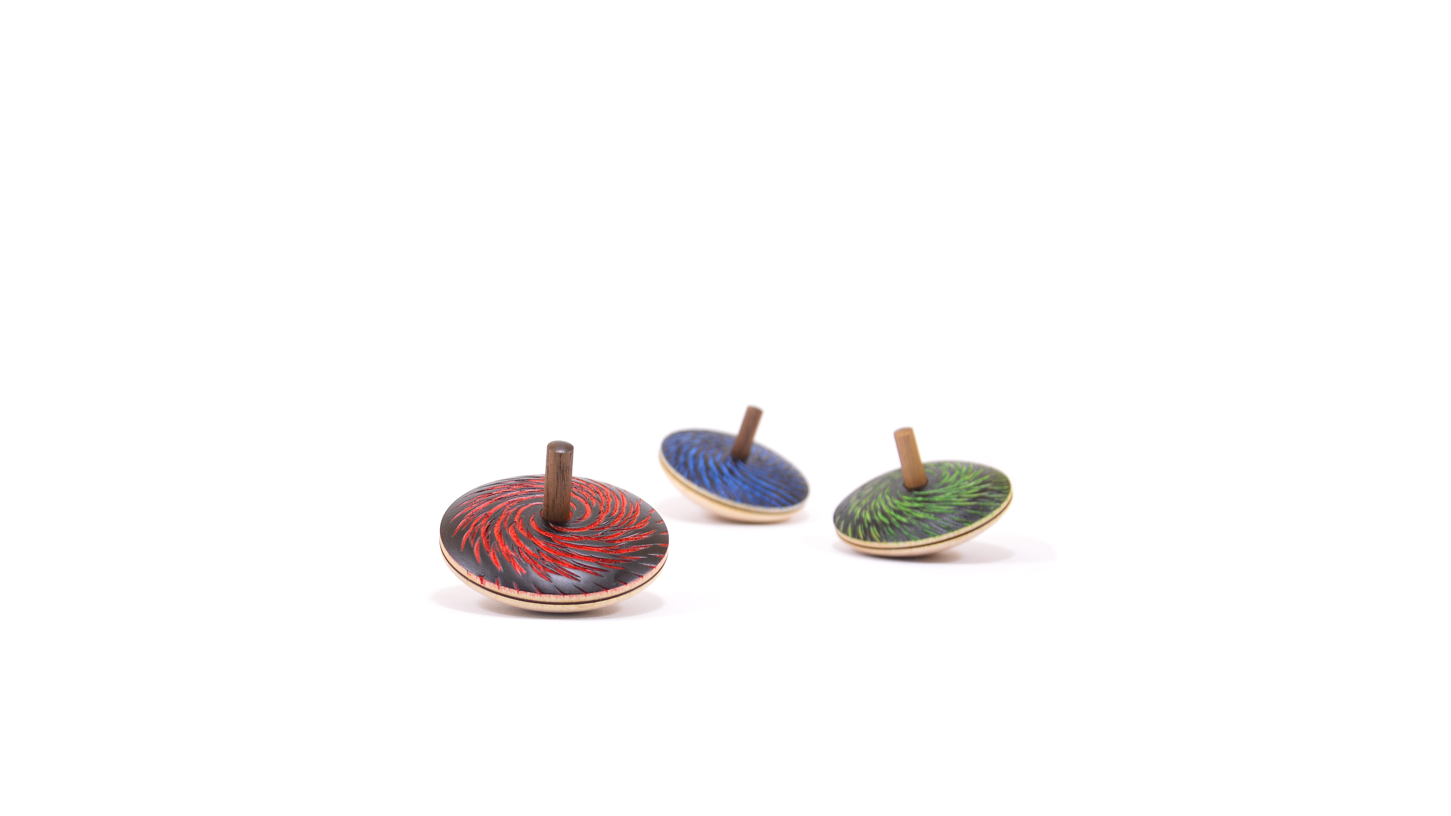 Bemalungen werden von Hand aufgetragen. Somit ist jeder Kreisel ein